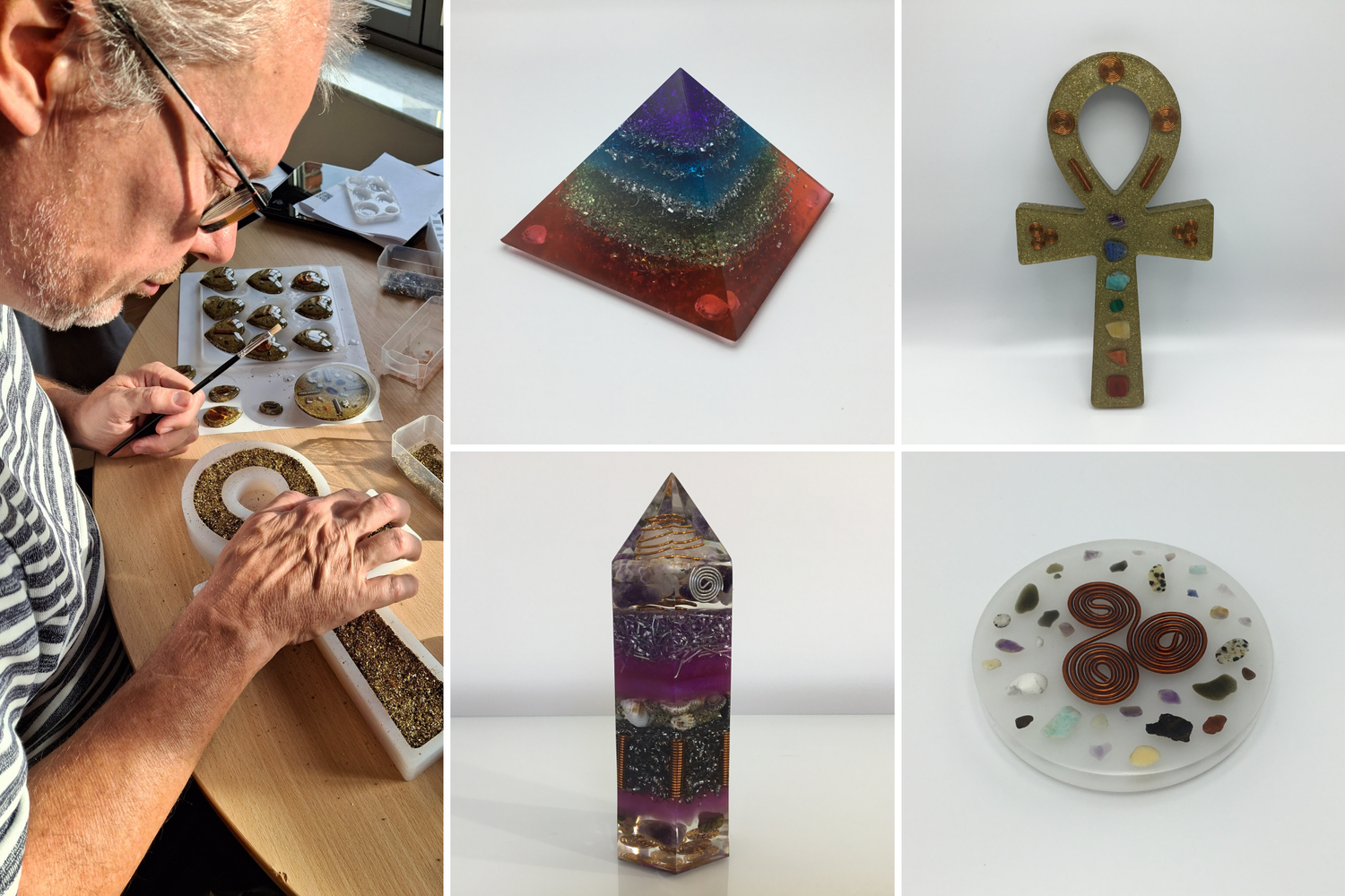 Naast de praktijk, creëert Carlos orgonieten onder de naam Energy Harmonizers.
